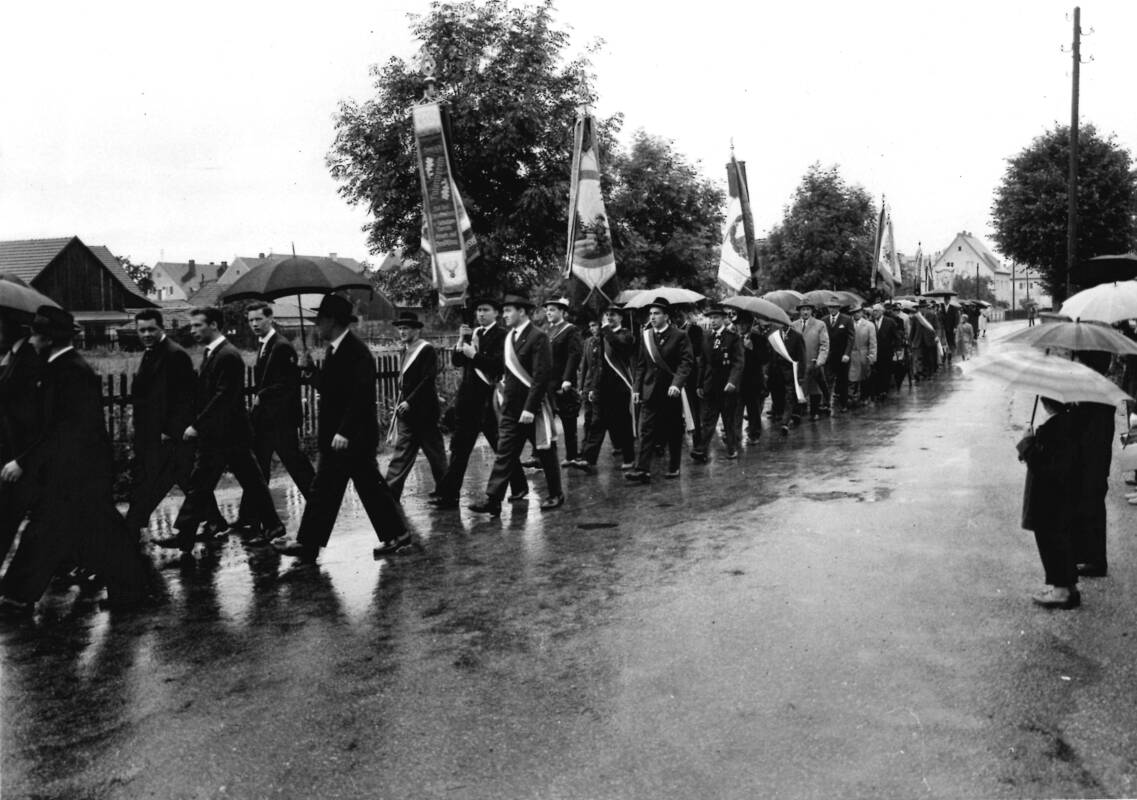 Der Kircheneinzug der Vereine am Festsonntag fand bei schlechten Wetter statt. Der Feierlichkeit des Festgottesdienstes, zelebriert von Abt Dr. Albericus Gerards vom Zisterzienserkloster Seligenporten, tat dies jedoch keinen Abbruch.