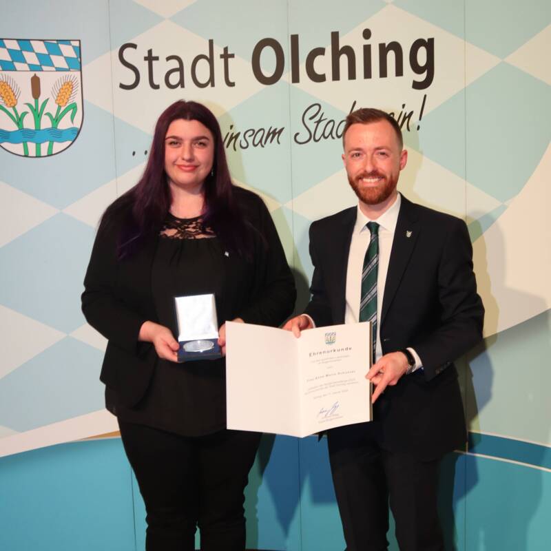 Tobias Schwarz vom Minigolf Sport Klub wurde für die Titel Mannschaftseuropameister mit der Deutschen Nationalmannschaft geehrt. Alle geehrten SportleInnen erhielten die Sportlermedaille mit Urkunde der Stadt Olching in Gold.