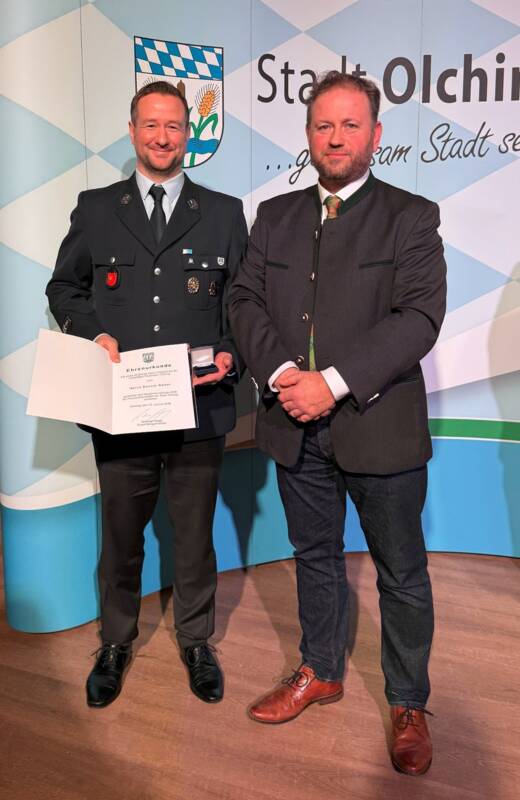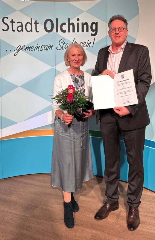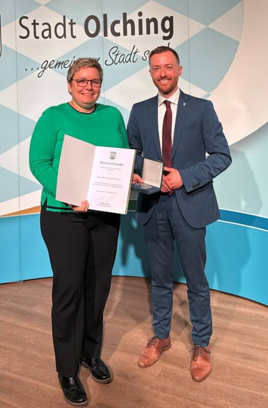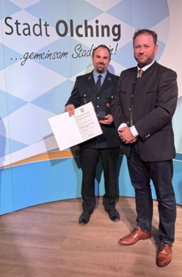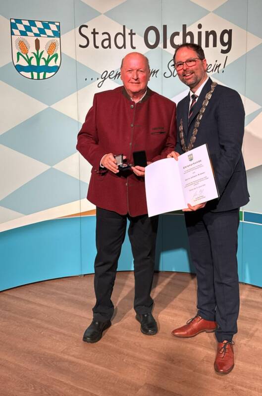 Herr Krämer erhielt die Silber-Medaille und die Silber-Urkunde der Stadt Olching.